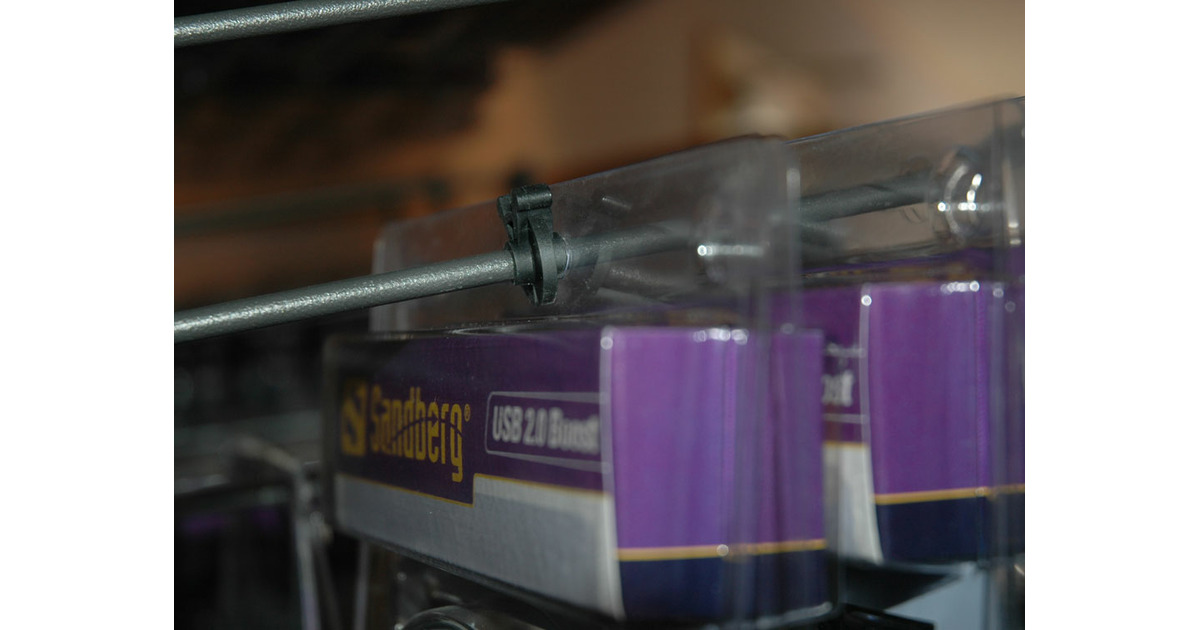 Small plastic clip to push products forward on hooks that are not full, so that your display always looks neat and attractive.